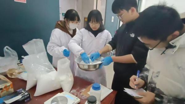 2024年12月8日,茶壳新材团队在实验室优化原料配方