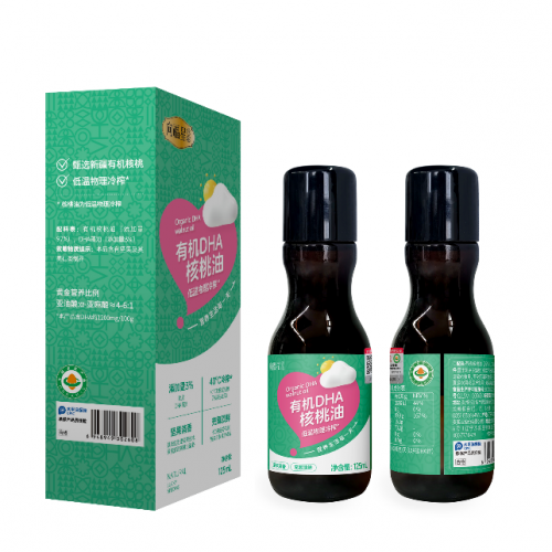有机DHA核桃油瓶装适合作为家庭常备,凉拌与低温烹饪更从容;