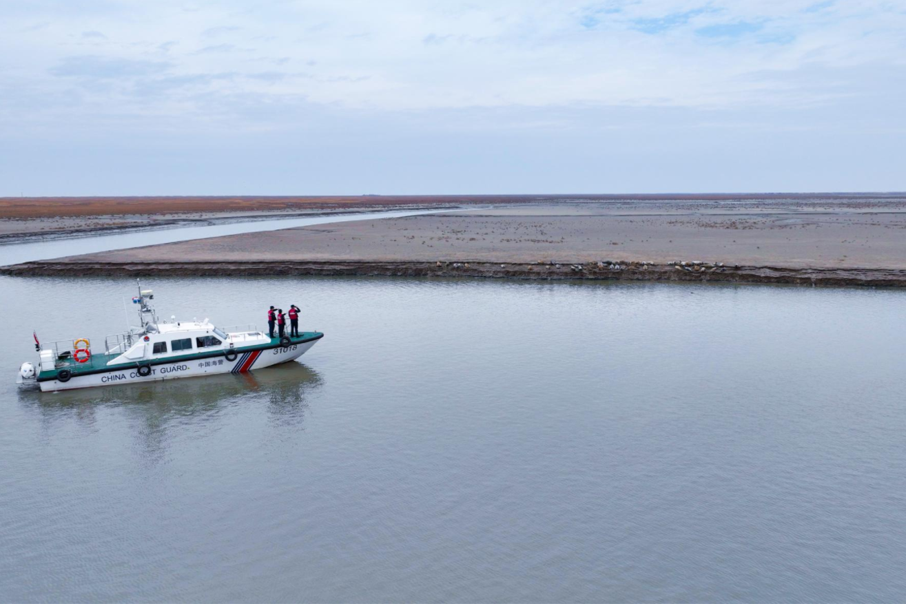 在斑海豹洄游的关键水域,盘锦海警局坚持“人防+技防+物防”三位一体,织密安全防护网。执法艇每日巡航,穿梭于辽河口浅海区及斑海豹聚集地,重点排查非法捕捞、违规布网、船只扰动等风险隐患。
